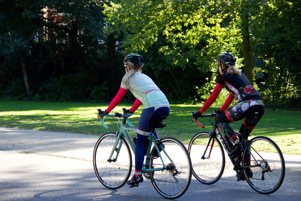 Altijd een must dames! Maar zeker in de winter met gladde herfstbladeren die op de grond liggen. Zorg dat je voldoende profiel op je banden hebt, zodat je minder snel kans hebt op uitglijden. Want als je de vaart er goed in hebt zitten, kan het behoorlijk gevaarlijk zijn om onderuit te gaan. Voldoende profiel op de banden betekent meer grip. Ligt er sneeuw, dan is het raadzaam om je bandenspanning iets te verlagen, zodat je gemakkelijker door de sneeuw fietst en meer grip hebt.
