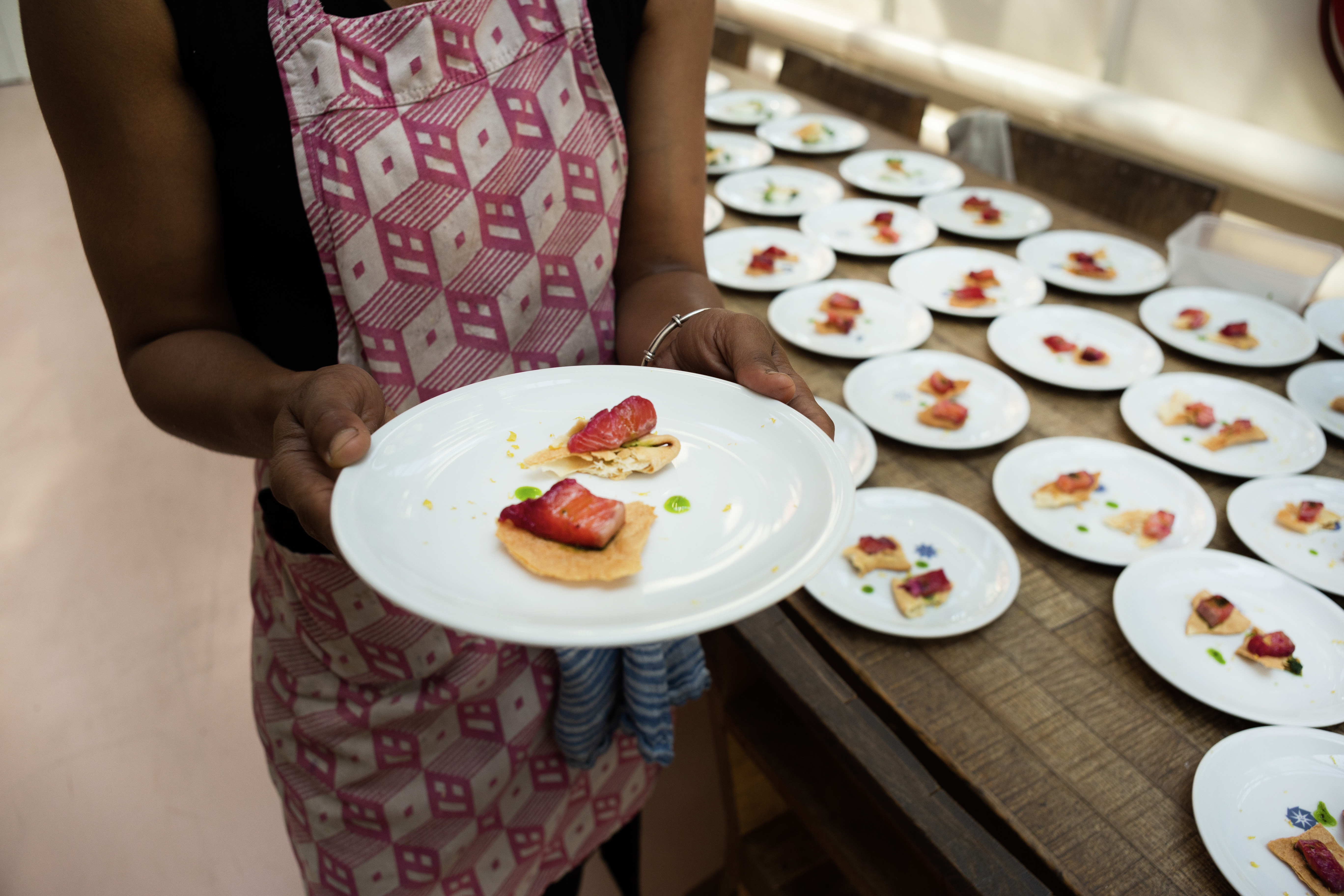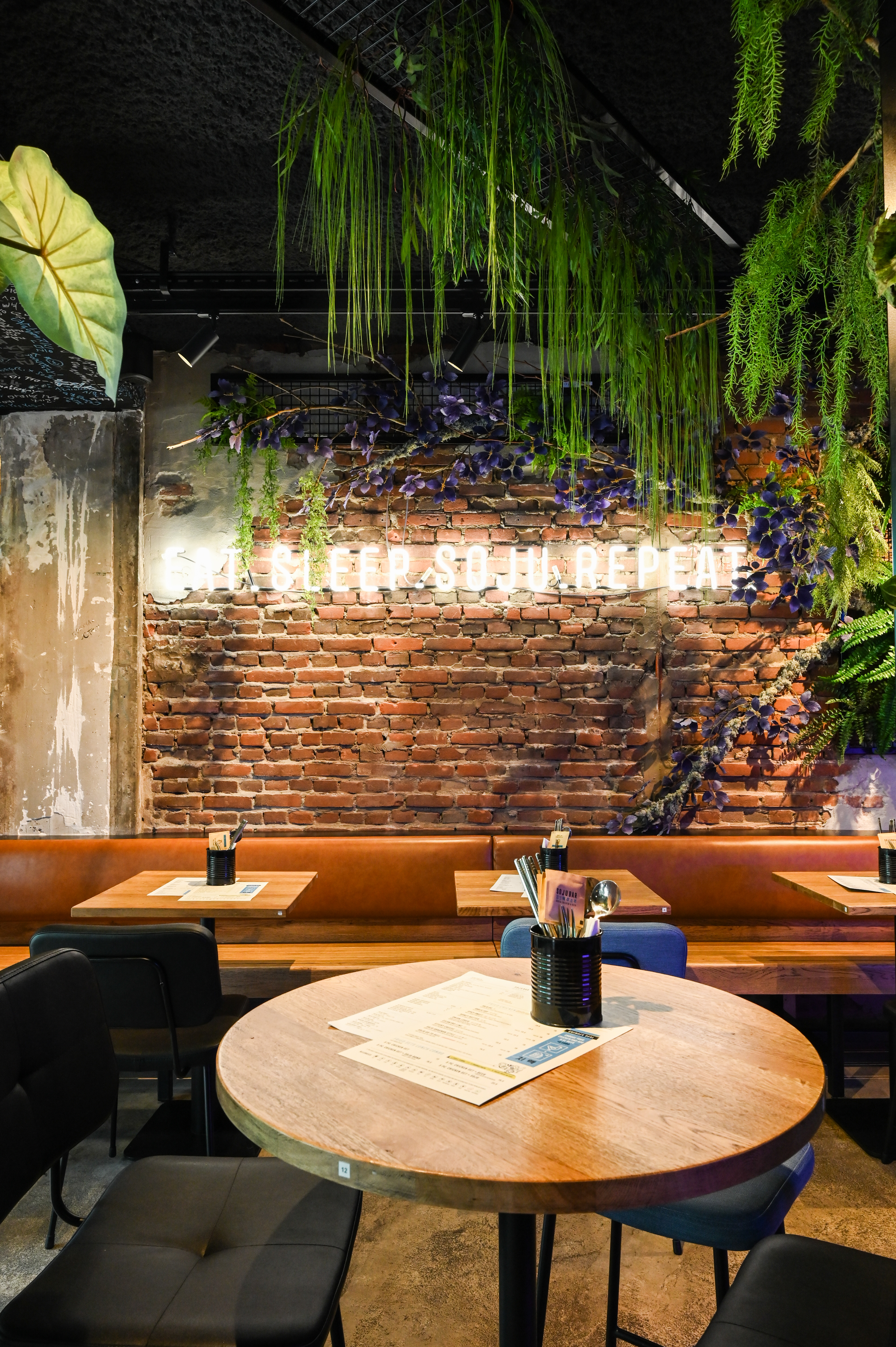 Het restaurant is gevestigd in het imposante pand van de studio van Piet Hein Eek. Deze industriële locatie ademt creativiteit, met zichtbare sporen van vakmanschap in elk detail. Gasten worden omringd door originele ontwerpen, waaronder tafels, stoelen en verlichting, die een integraal onderdeel vormen van de sfeer. Het interieur weerspiegelt het ethos van Piet Hein Eek: duurzaam, innovatief en vol karakter.